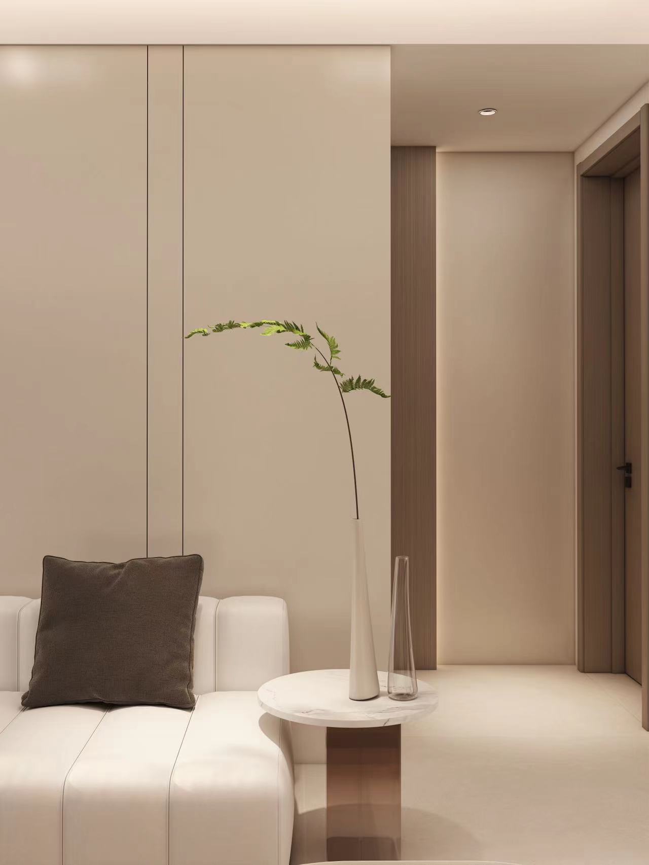 讓簡約的美觸手可及,摒棄繁瑣與復(fù)雜,成就一個(gè)簡約溫馨的家。白色,雅致脫俗,總能給人一種安逸、舒心的感覺。極簡主義中白色的運(yùn)用,像是微風(fēng)拂來的清冽,優(yōu)雅又寧靜。家居空間的高級(jí)感無須繁瑣堆砌來實(shí)現(xiàn),適當(dāng)留白是極簡主義的主旨�?蛷d背景墻以白色為整體基調(diào),簡約的柜體像在撫慰嘈雜的一切,在紛繁的世界中尋找一方屬于自己的靜謐之所。