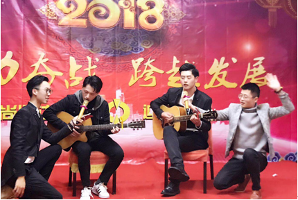 這次先進表彰暨新春�(lián)歡會由公司人力資源部主辦與策�,各部門自編自演,節(jié)目精彩豐�。新春晚會的開始是以充滿青春活力的《舞�SHOW》開場,動感的舞蹈贏得了陣陣掌聲;雙人相聲表演《笑�90后》�小品《青春偶像劇�、《大話西游》爆笑全場,讓人忍俊不禁;朗誦《你幸福嗎》讓我們感受到了有時候幸福其實也很簡�;女生合唱《小幸運�、男生吉他彈唱《曾�(jīng)的你》為我們營造了浪漫溫馨的節(jié)日氛圍;舞蹈《好運來》以喜慶歡快的方式將晚會推向了高�。期間的多輪抽獎活動,給大家?guī)砹藲g聲笑語和驚喜不斷�伴隨著大合唱《黃河大合唱》、《感恩的心��2017年度新春�(lián)歡晚會緩緩落下帷幕。隨后的年會晚宴氣氛和諧、溫�、歡��