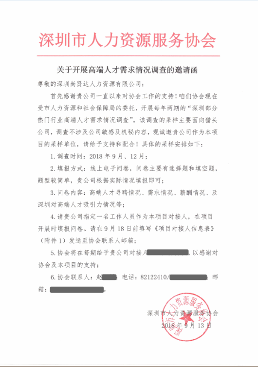 近期,尚賢達獵頭受深圳人力資源服務協(xié)會的邀�,為“深圳部分熱門行業(yè)高端人才需求情況調(diào)�”項目提供采樣�(shù)�(jù)�