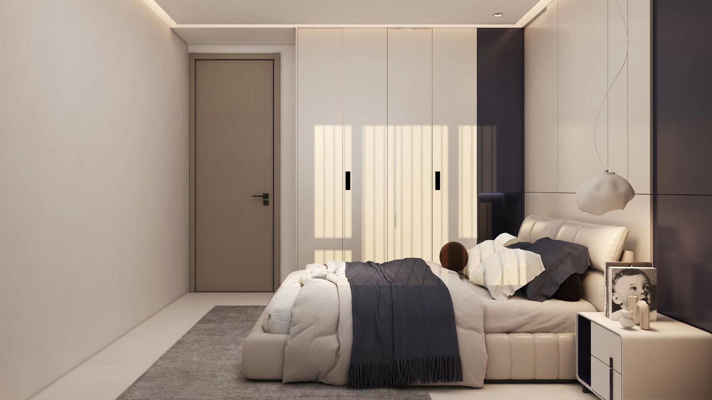 主臥的風(fēng)格舍去了華麗的裝飾,不形于色,內(nèi)斂有度。以白色系為主,用暖色燈光來提升整體的溫馨感,棄繁從簡,以少勝多,留下純粹的本質(zhì)。